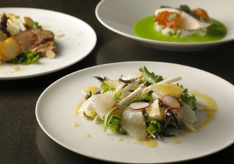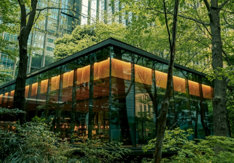 ホテル1階にある「大手町の森」に包まれた別棟「ザ・カフェ by アマン」では、季節の食材を使ったフレンチを提供しています。