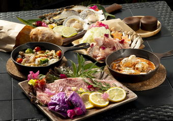 シオサイテラスでは、熊野牛のステーキをはじめ、和歌山県産の新鮮な魚介類や野菜を味わえるお料理をご用意しています。